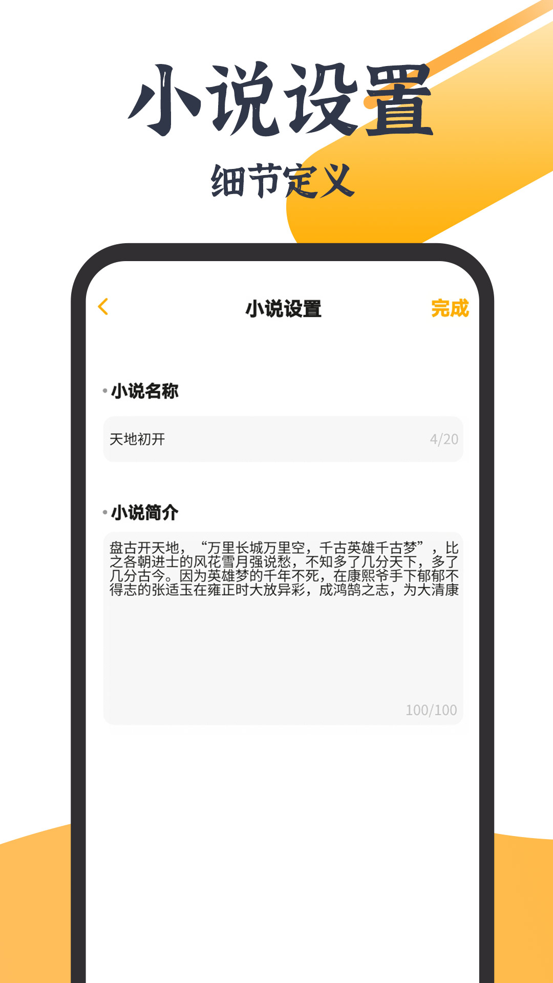 2.满足所有用户的需求,只需要自定义小说类型和小说风格即可,为小说添加关键词额细节标签。