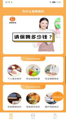 2、提供多种家政服务,包括家庭保洁、保姆、月嫂、育儿嫂、钟点工、厨师等,满足用户不同的家政需求。