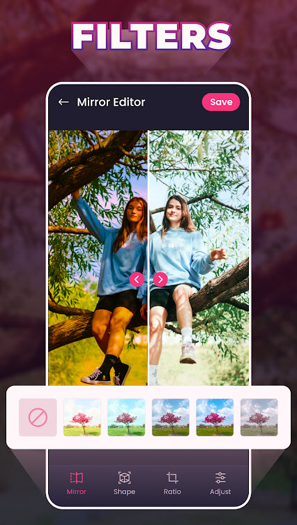 照片镜面效果是一款轻便易用的手机软件,功能简单易懂。通过该软件,你可以为你的照片添加镜面效果,制作出令人惊叹的艺术照片。