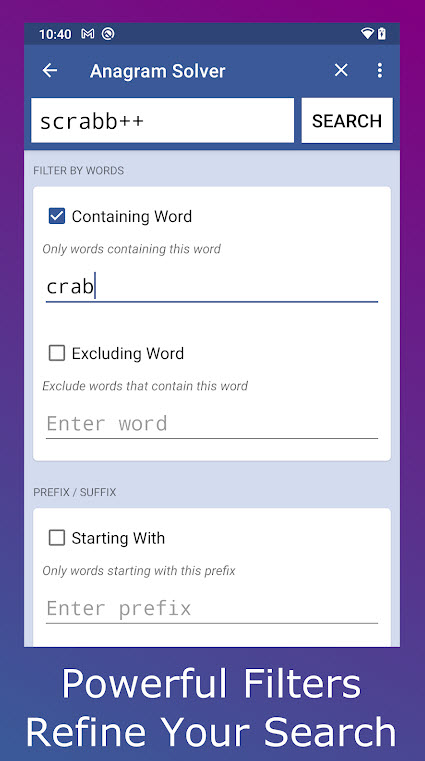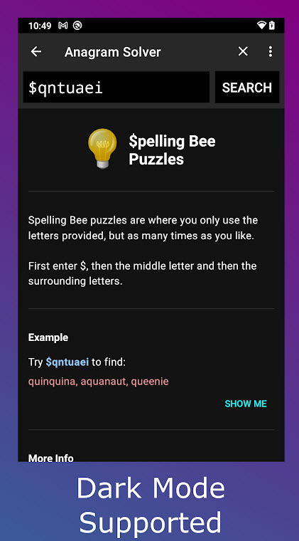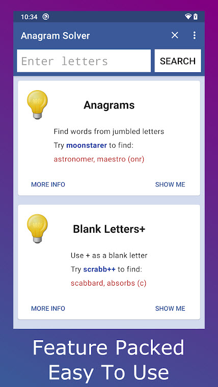 字谜解算器是一款专为语言学习和词汇扩展而设计的移动应用。它通过创新的字谜解算器和智能单词搜索功能,帮助用户提升语言理解力和词汇量。用户可以在这个App中参与各种有趣的字谜挑战,同时通过搜索功能找到并学习相关的新词汇。