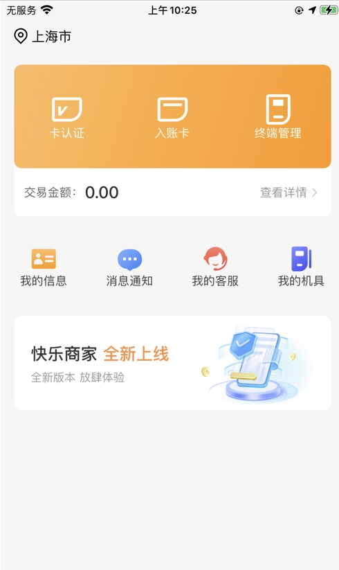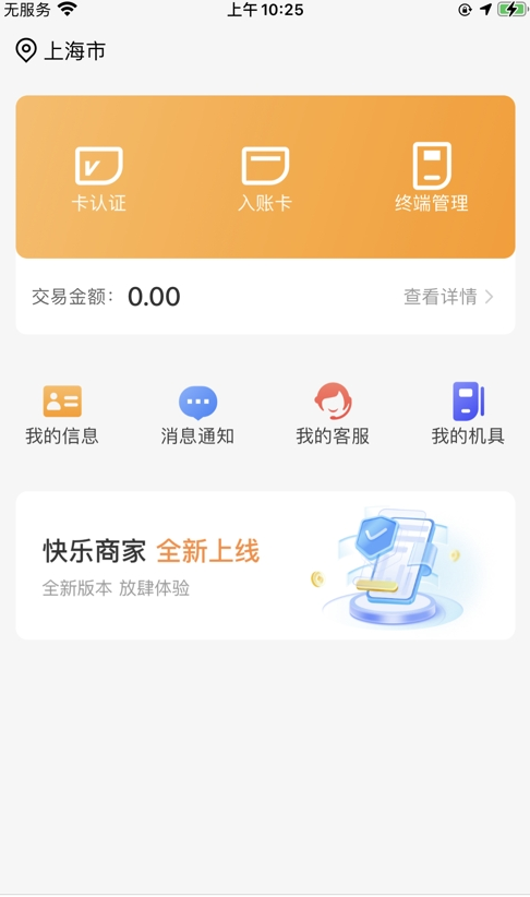 快乐商家app,一站式账单问题,专业的移动支付应用,软件快速完成智能终端设备,完成实名认证,及时的进行订单处理。