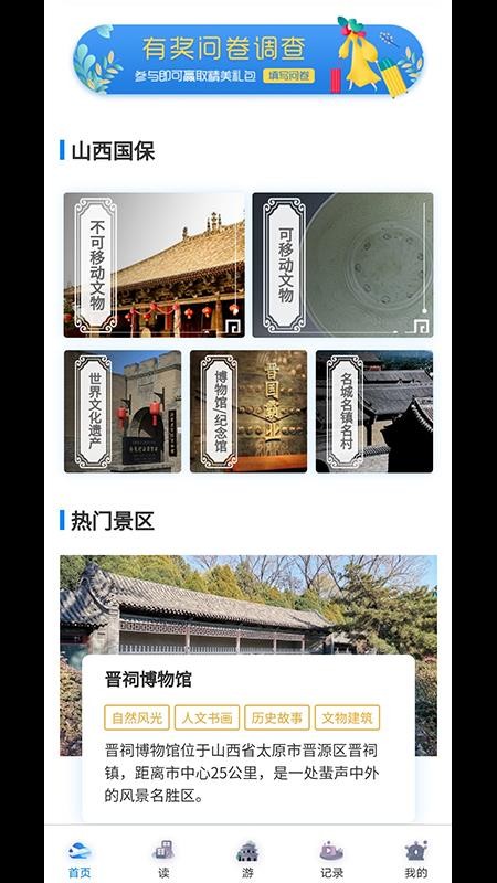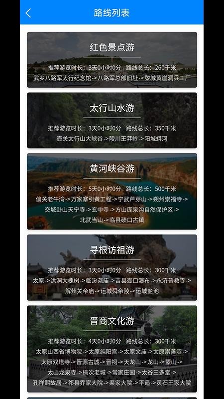 8、在首页中查看各种主题路线和文章内容,了解更多山西的历史文化,通过软件查看各个热门景区的详细介绍内容,快速游览各个景区