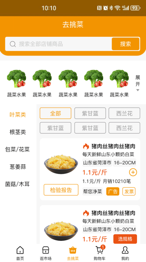 1、只需打开app,注册账号并登录,选择您心仪的食材,点击购买即可。