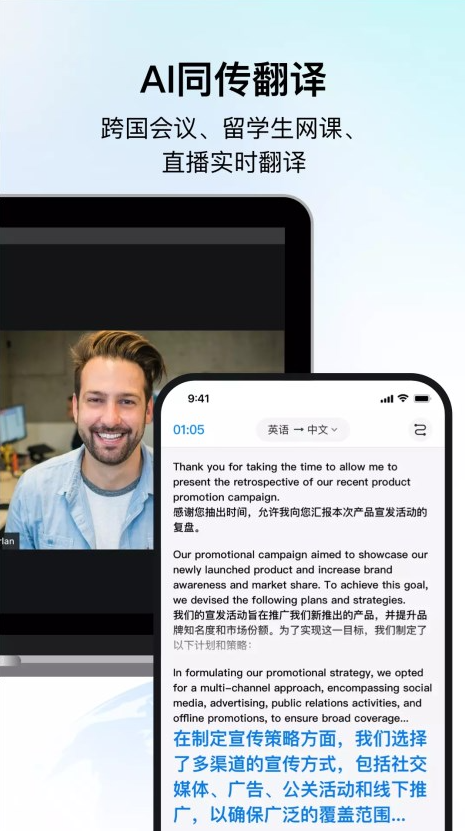 4、语音自然易懂:翻译语音非常自然,听起来就像一位母语使用者在和您对话。再也不必担心听不懂机器人般的语音翻译了。