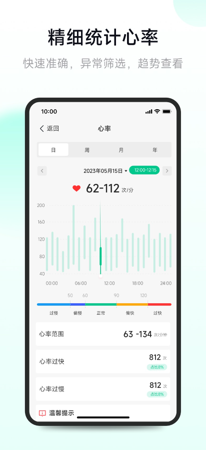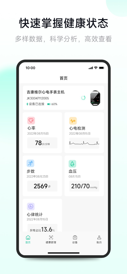1、实时心电监测:利用先进的心电测量技术,持续监测用户的心率,以确保瞬间心律问题能被即时发现,提供专业且及时的心电图数据图表;