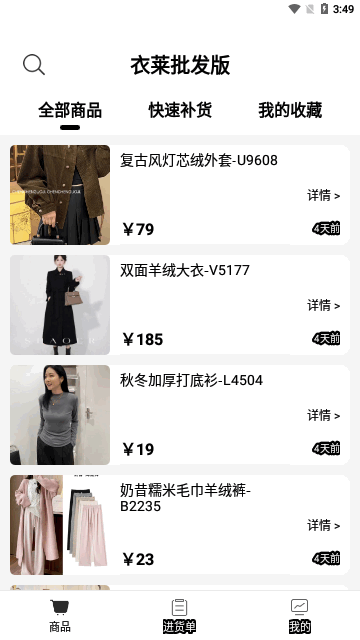 2、基于人工智能的销售预测,提升库存管控能力;各种款式和类型的服装都可以在这里找到。用户可以在这里进行批发购买。