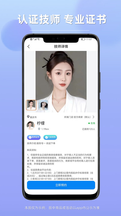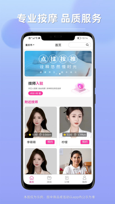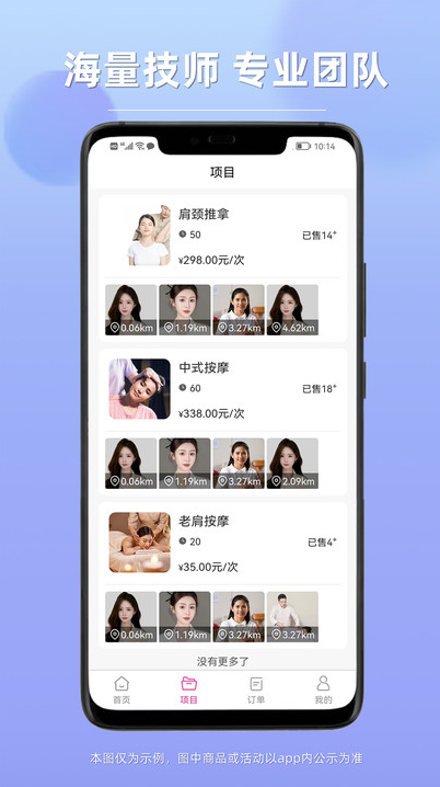 3、专业师傅:所有按摩师傅都通过严格的职业能力和服务态度考核,保证所有用户都能享受到专业和舒适的按摩服务。
