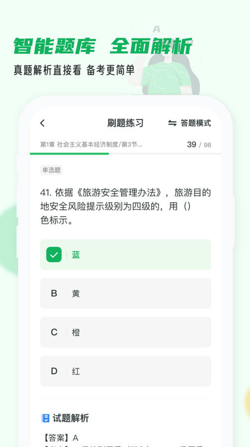 3、模拟测试:模拟考试环境,随时做题,考后即可查看答案解析,了解您的复习效果如何。