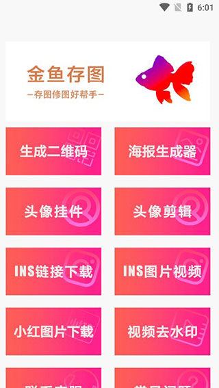 1、在使用金鱼存图app时,你只需要下载并安装好软件,然后根据自己的需要选择头像制作或者海报设计功能。