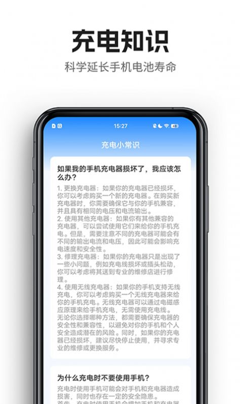 4.充电知识输出:除了提供实用功能,还有大量关于电池维护保养的知识供用户学习。通过了解和应用这些知识,用户可以更好地保护和维护手机电池,延长电池的使用寿命。
