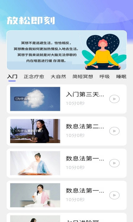 2、很多入门的基础课程,还有冥想以及呼吸等功能。