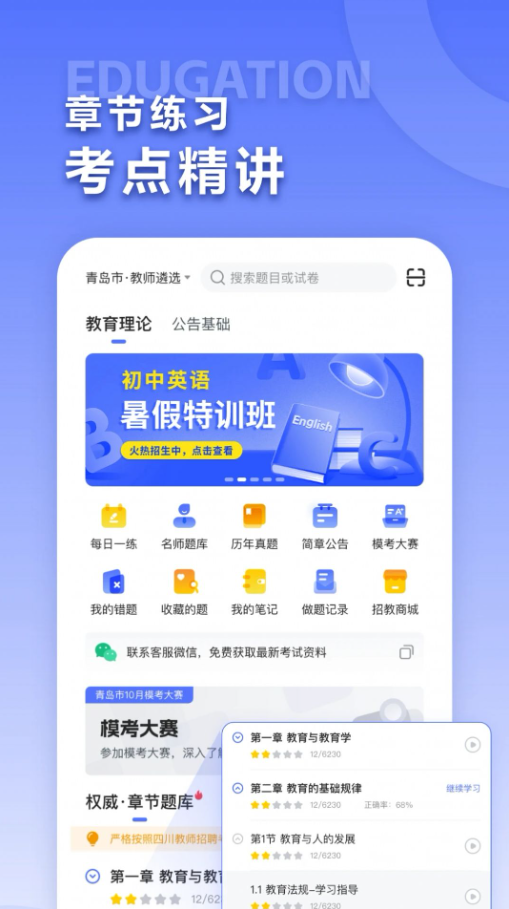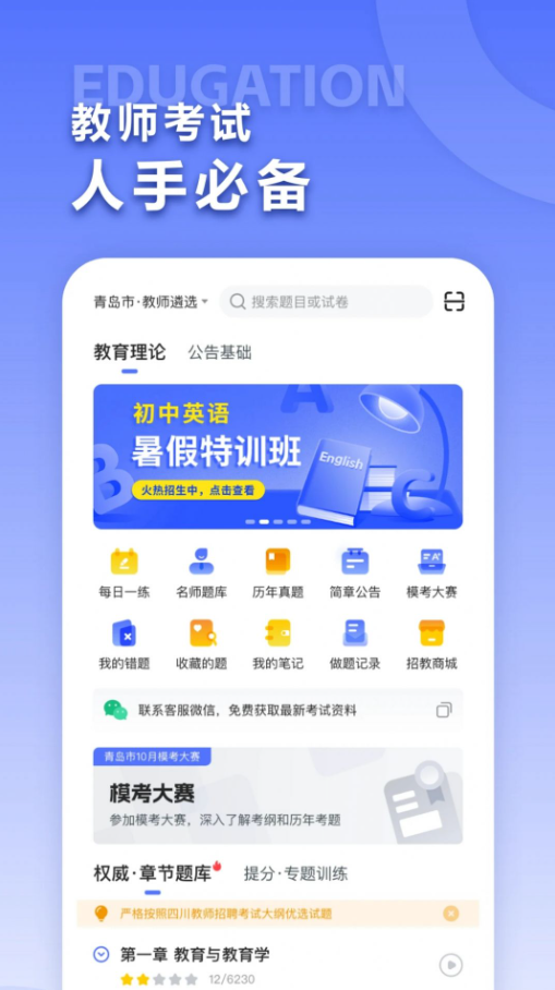 招教宝典app是一款为备考教师招聘考试的用户提供全面的备考资源和练习功能的题库软件,里面的习题库由专业教师团队量身定制,内容覆盖了考试所需的知识点。用户可以根据自己的备考需求和情况进行选择合适的学习方案,同时,软件也能根据用户的学习情况智能推荐相应的记忆方法和技巧,以提高用户的备考效率,有需要的朋友快来下载使用吧。