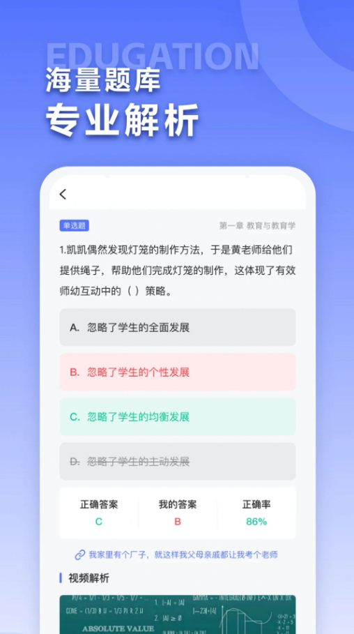 1、丰富的习题库:习题库由经验丰富的教育专家团队量身定制,覆盖了所有你需要掌握的知识点,使你在备考中轻松愉快。
