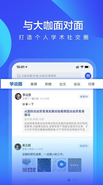 3. 学术互动,与其他用户进行交流和互动,分享自己的观点和经验。