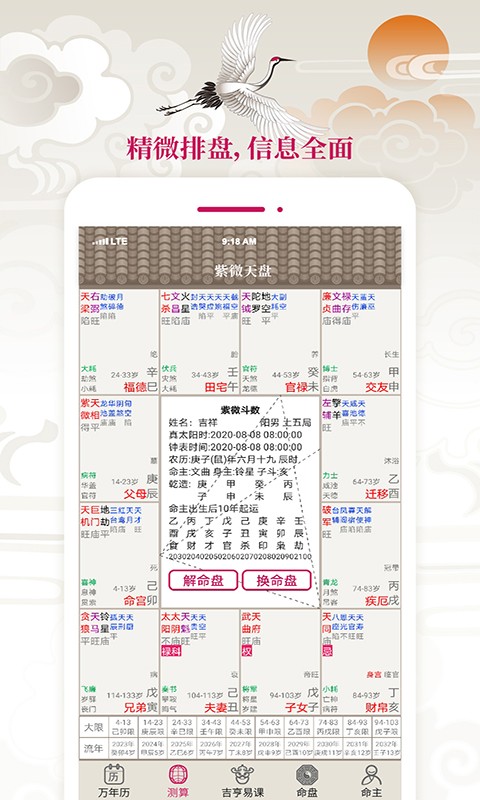 1、拥有准确的具体运势测算功能,根据出生日期和时间,结合紫微斗数和八字精盘。