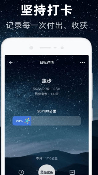 1、规划目标,只需要简单的填写目标任务、设定截止日期和提醒时间,让每一天都有意义。