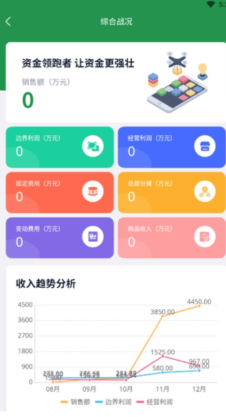 山高海投app,可以一键查看企业部门的收益,边界利润,部门的经营利润等。