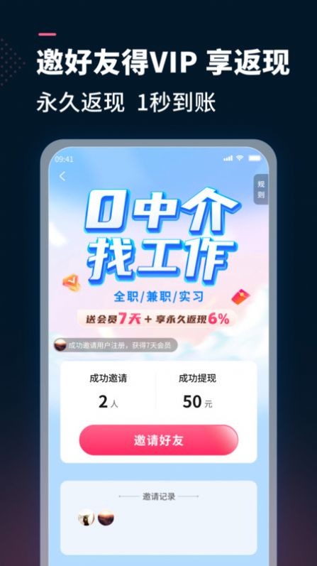 1、邀请好友得VIP享返现,永久返现且1秒到账,服务功能多;