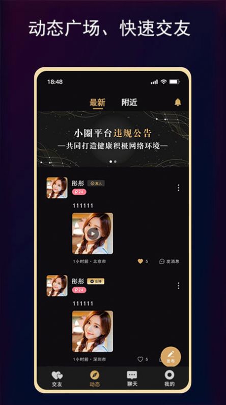 2、提供动态广场功能,快速交友欢乐多多,轻松交友;