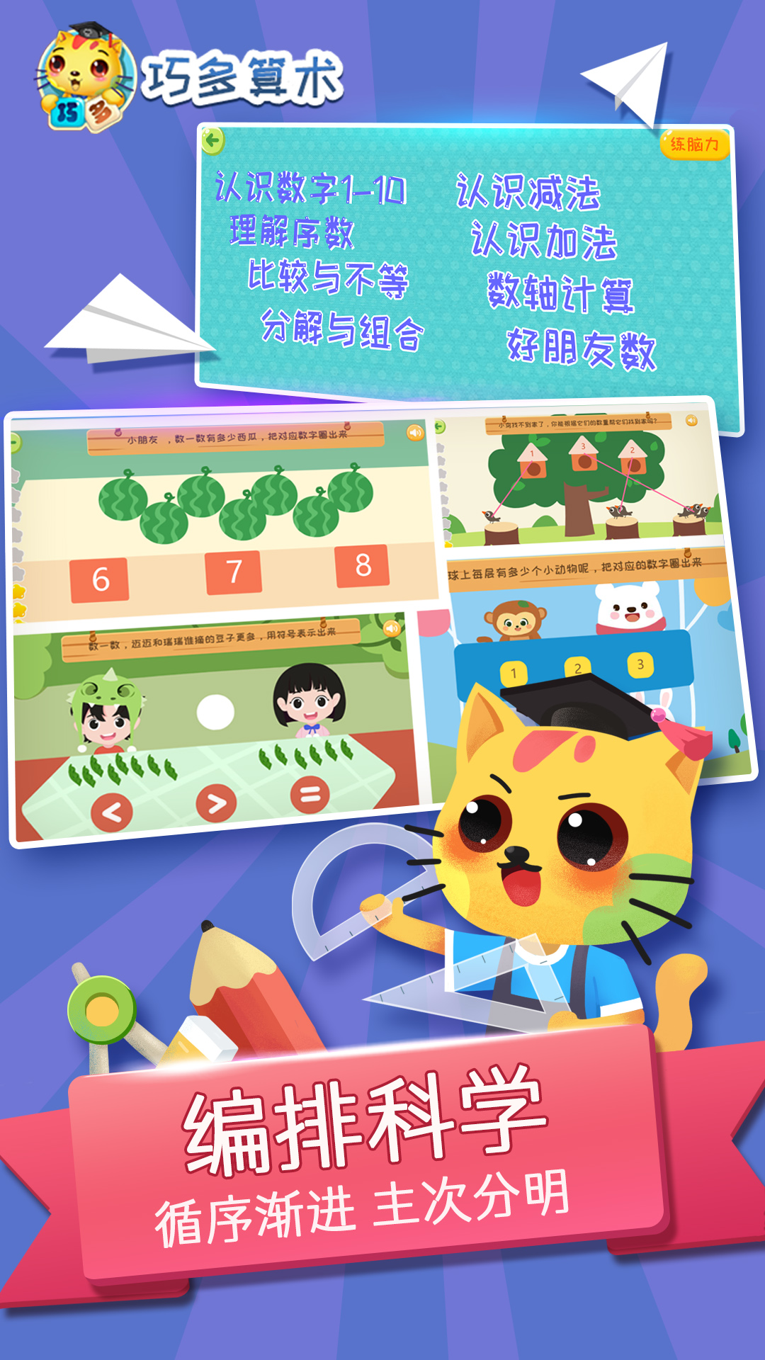 巧多算术软件专业的少儿学习练习,结构合理,课时结构练习,符合儿童学习兴趣。