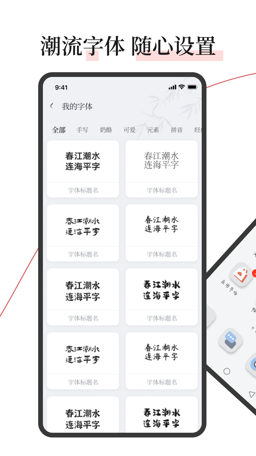 2.满足所有用户的字体需求,全都是潮流字体,随意设置免费下载使用,分类齐全,手写体、花哨体都有。