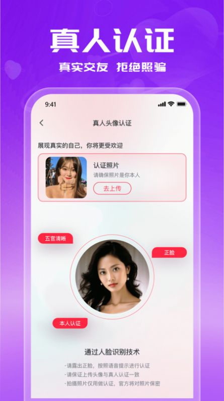 1、真人认证,真实交友,拒绝照骗,每次开启认证无比的有趣;