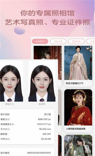 4、内置了实时更新的高效功能,例如拍摄艺术写真照片的各种风格、制作专业证件照片。