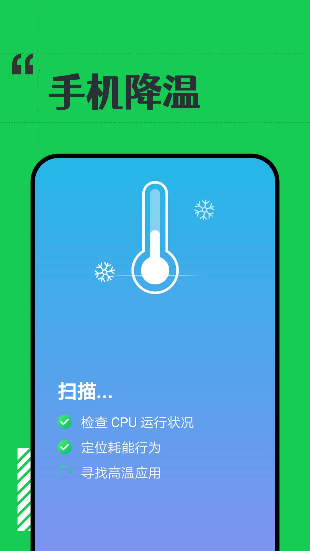2.一键省电模式,帮助用户手机一天的电量,打游戏手机温度很高,掉电很快,智能降温,完成降温处理。