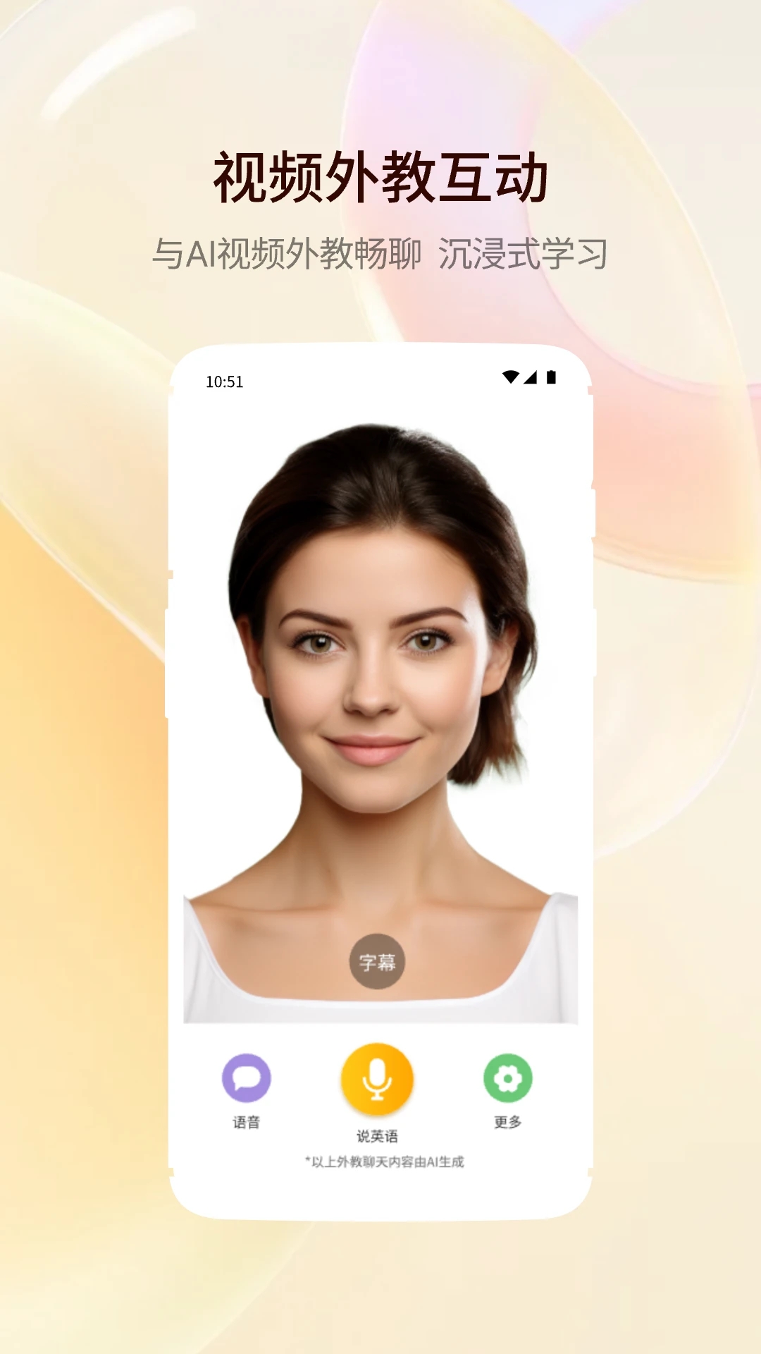 1、视频外教互动,与A视频外教畅聊,沉浸式学习,便捷掌握;