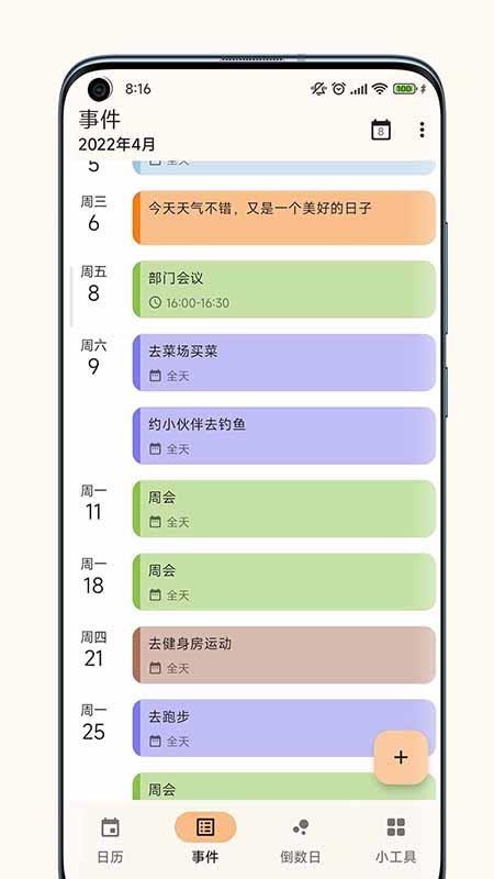 3、事项记录提醒功能,帮助用户根据日程安排时间,合理安排自己的时间,提高效率。