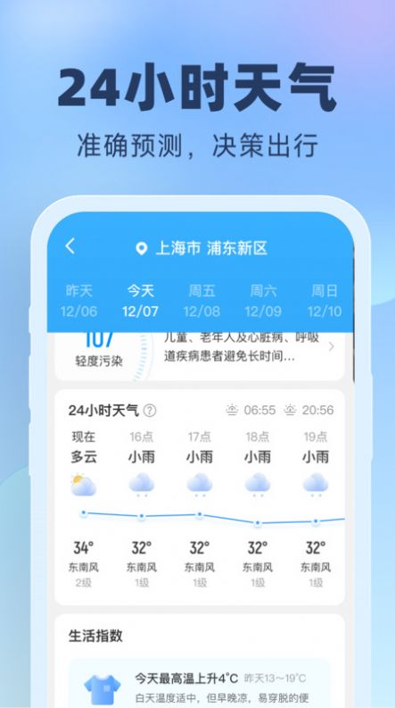 1、24小时天气,准确预测,决策出行,天气信息内容及时掌握;
