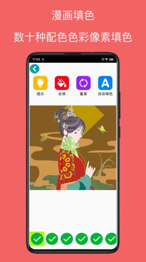 1、漫画填色,数十种配色色彩像素填色,填色功能强大无比;