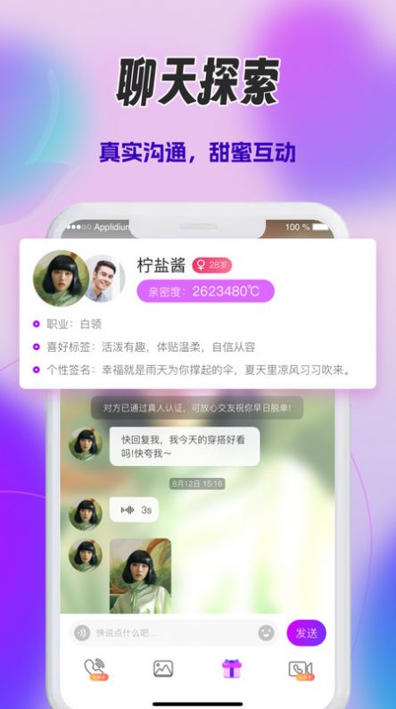 3、聊天探讨,真实沟通,甜蜜互动,探讨到更多的话题。
