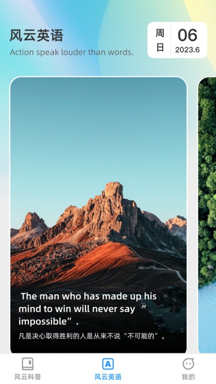风云快刷最新版是一款非常实用的应用程序,风云快刷最新版为用户提供有趣的科普知识和优美的英语句子。
