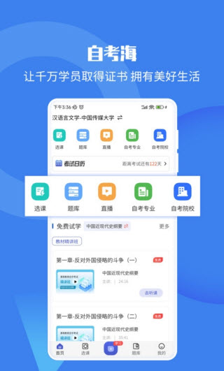 自考海题库网课是一款功能丰富、使用特色明显的自学备考软件。
