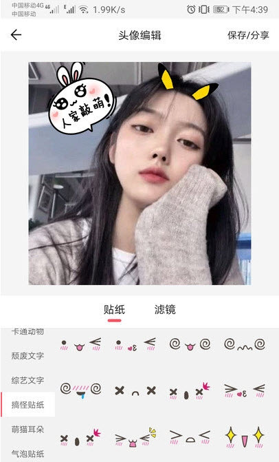 2、滤镜:提供多种滤镜效果,可为头像添加特殊光效和色彩调整,增加艺术感和个性化。