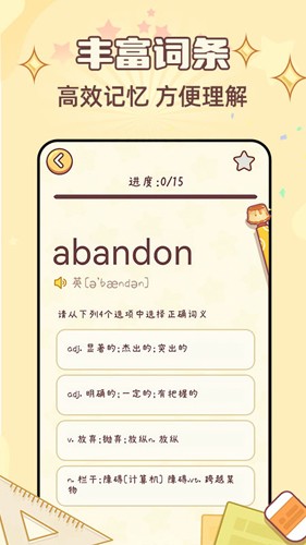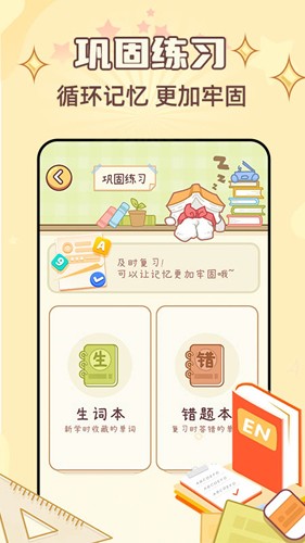 记忆牢靠以及错题巩固等功能,可以帮助用户轻松掌握单词或词语。