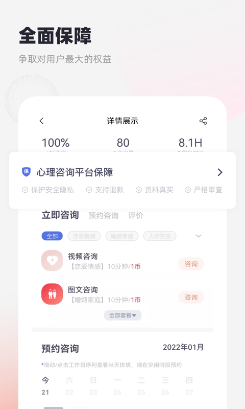 3、语音或视频与心理咨询师进行实时交流,相比于文字交流更加直观和有效。