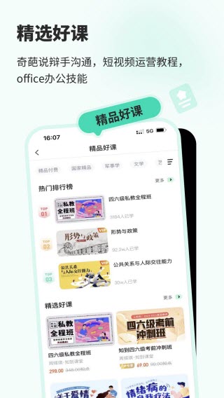 2、精选好课:智能精选了一些优质的课程,供用户进行选择学习,提高学习效果。