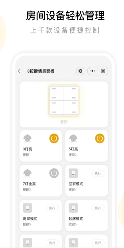 2、场景设置功能。用户可以根据自己的需求,自定义不同场景下智能设备的状态。