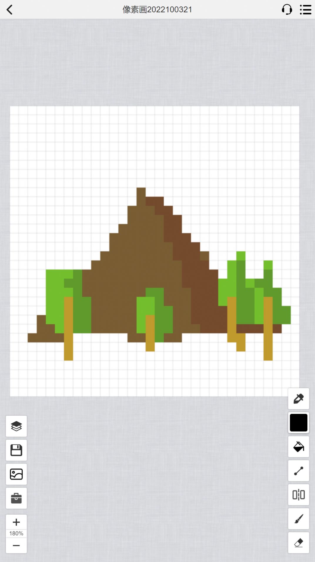 1.多种绘图工具,除了常用的填色笔刷,还有吸色工具,直线工具,镜像工具,油漆桶工具。