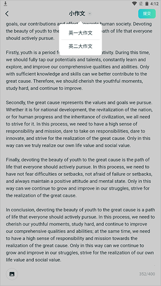 写好后就可以选择作文类型进行提交,提交好需要等待时间批发即可