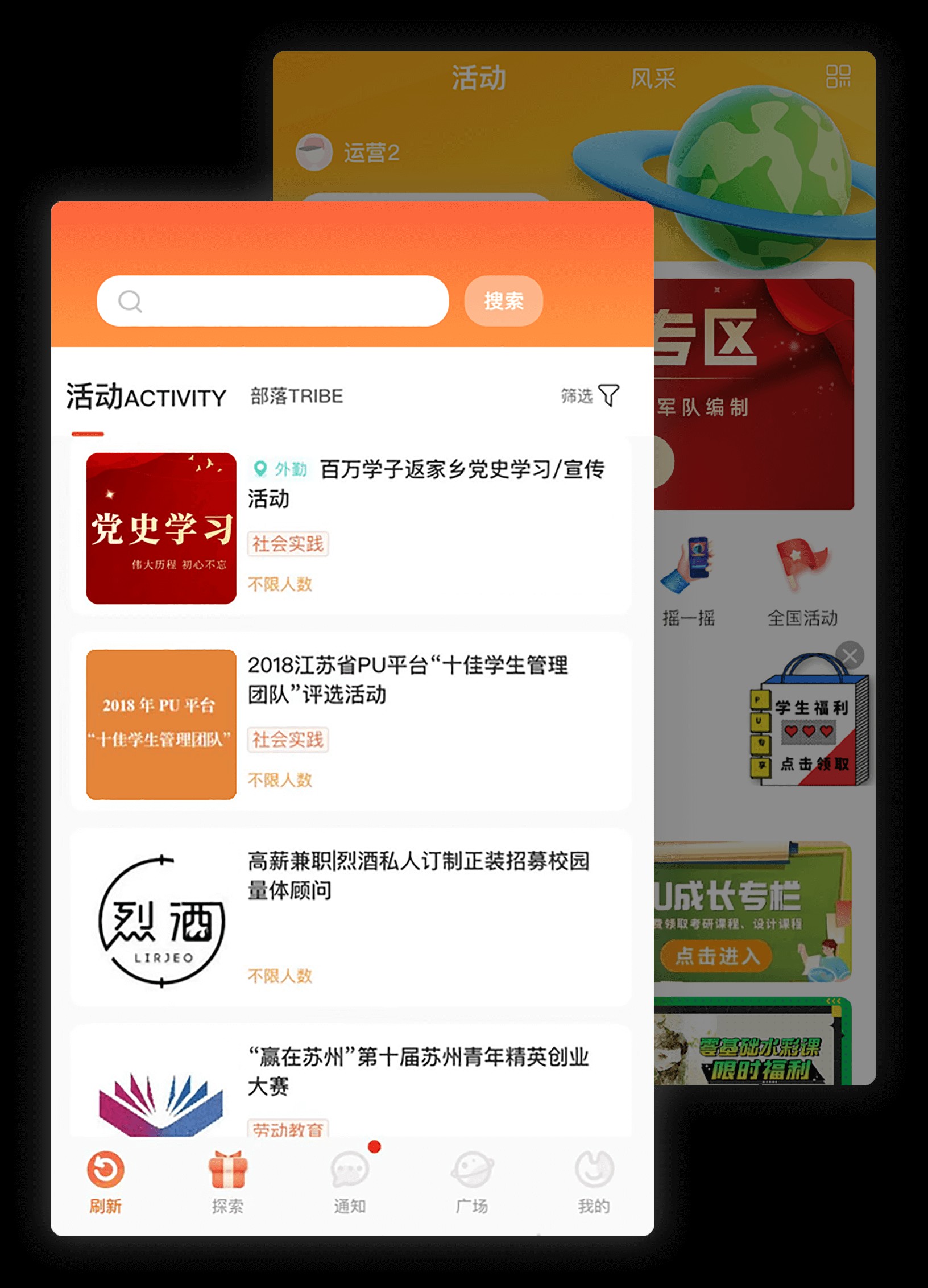 软件提供了线上的活动部落,用户可以参与里面的第二课堂活动。