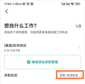 第二步:在“求职意向”的页面里,有个“求职状态”,点击下图所示位置,调整我们的求职状态