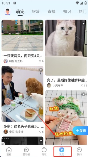 4、点击“发现”图标,查看各种精选内容和最新动态,发现更多乐趣。