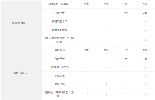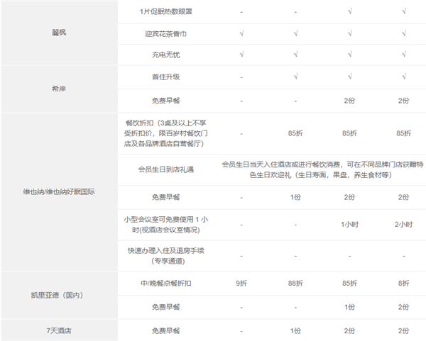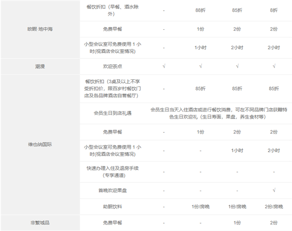 7、客房免费升级(权益明细中有该权益的品牌),需视客房状况并需由成员酒店来认定,仅在会员已是登记入住宾客时提供。