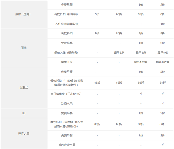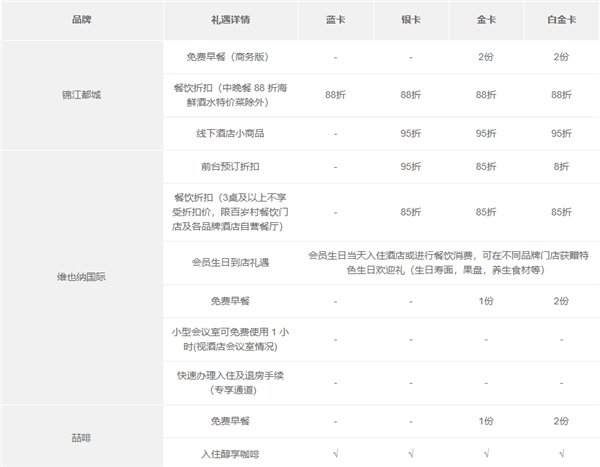 锦江江酒店会员卡权益介绍