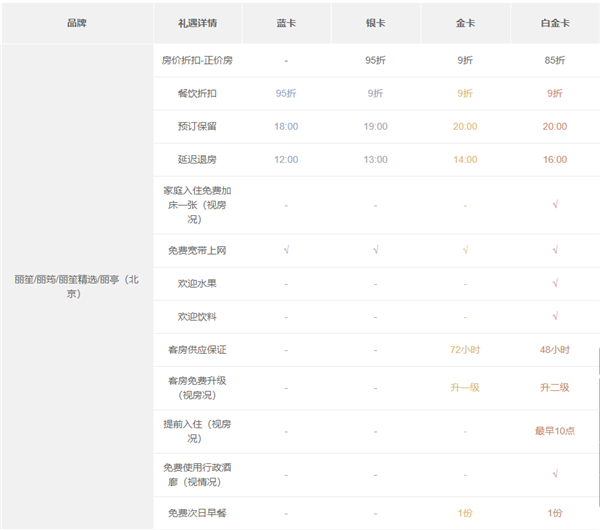 丽笙中国酒店权益说明(含丽笙精选、丽笙、丽筠、丽亭(北京))