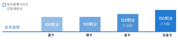 会员入住酒店离店后实付房费100元可获得的积分。