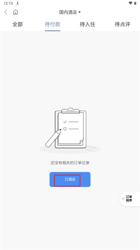 2、在到付款中点击订酒店;